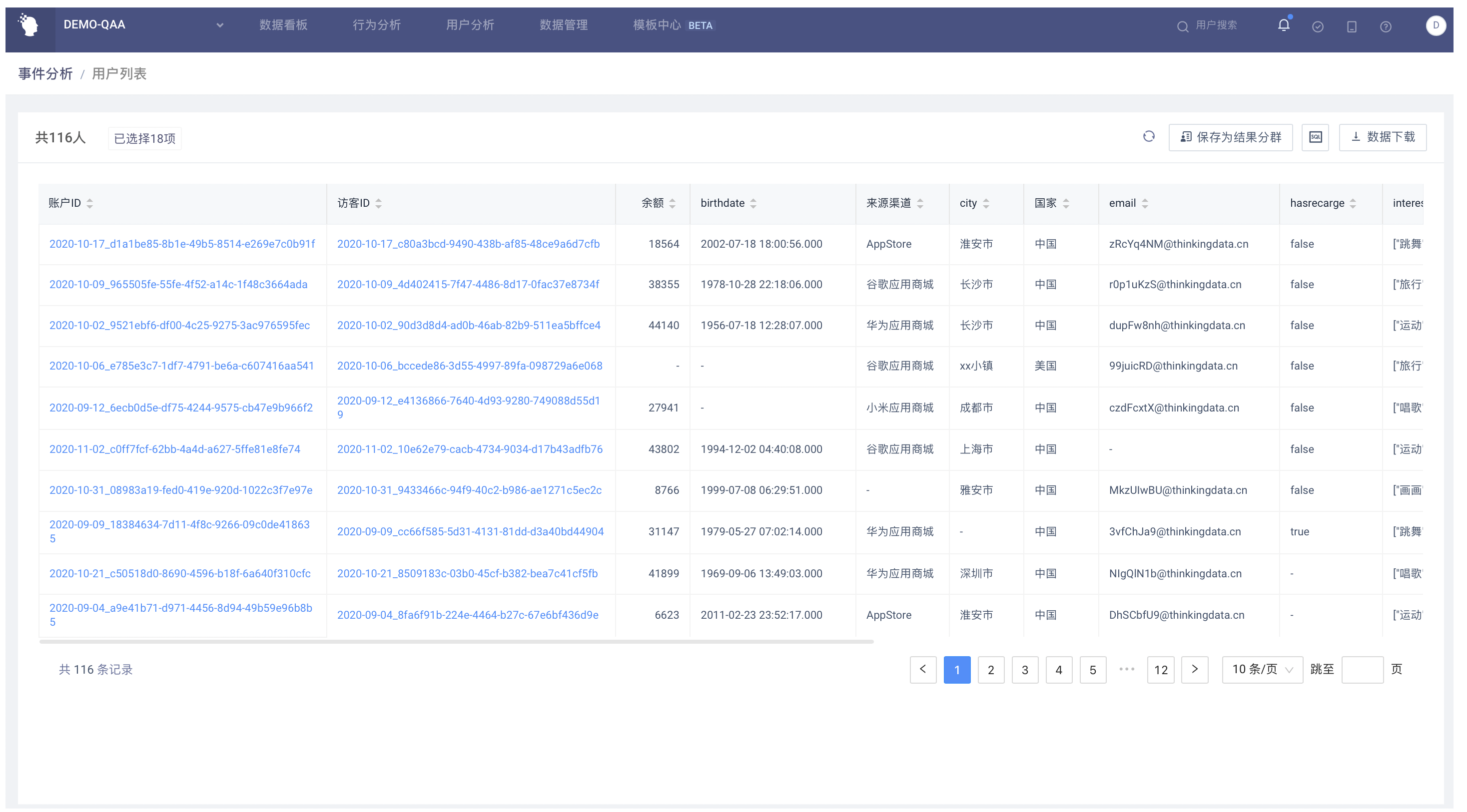 データをダウンロードする場合、完全なユーザーデータをダウンロードでき、最大ダウンロード上限は 100 万件
