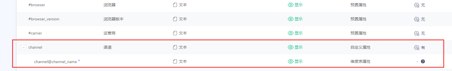 After the creation is successful, you can find the dimension table attribute namedchannel@channel _name