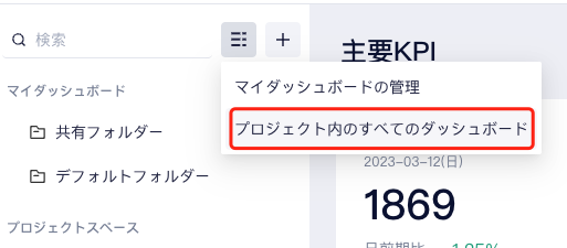 ダッシュボードは「マイダッシュボード」だけでなく、自身や共同編集権限で作成したプロジェクトスペースにも移動できます。