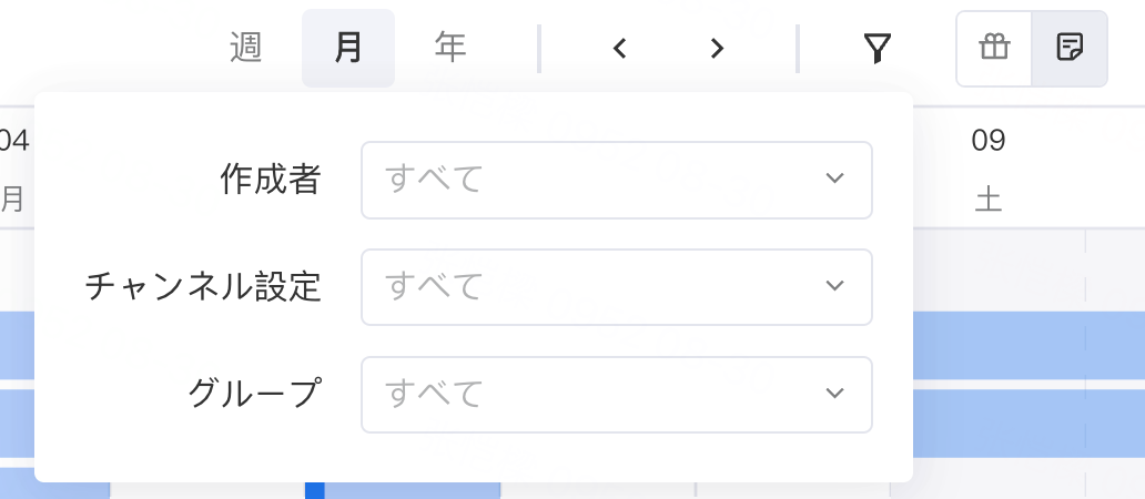 タスクの視点:作成者、チャネル、グループ項目で絞り込みが可能です