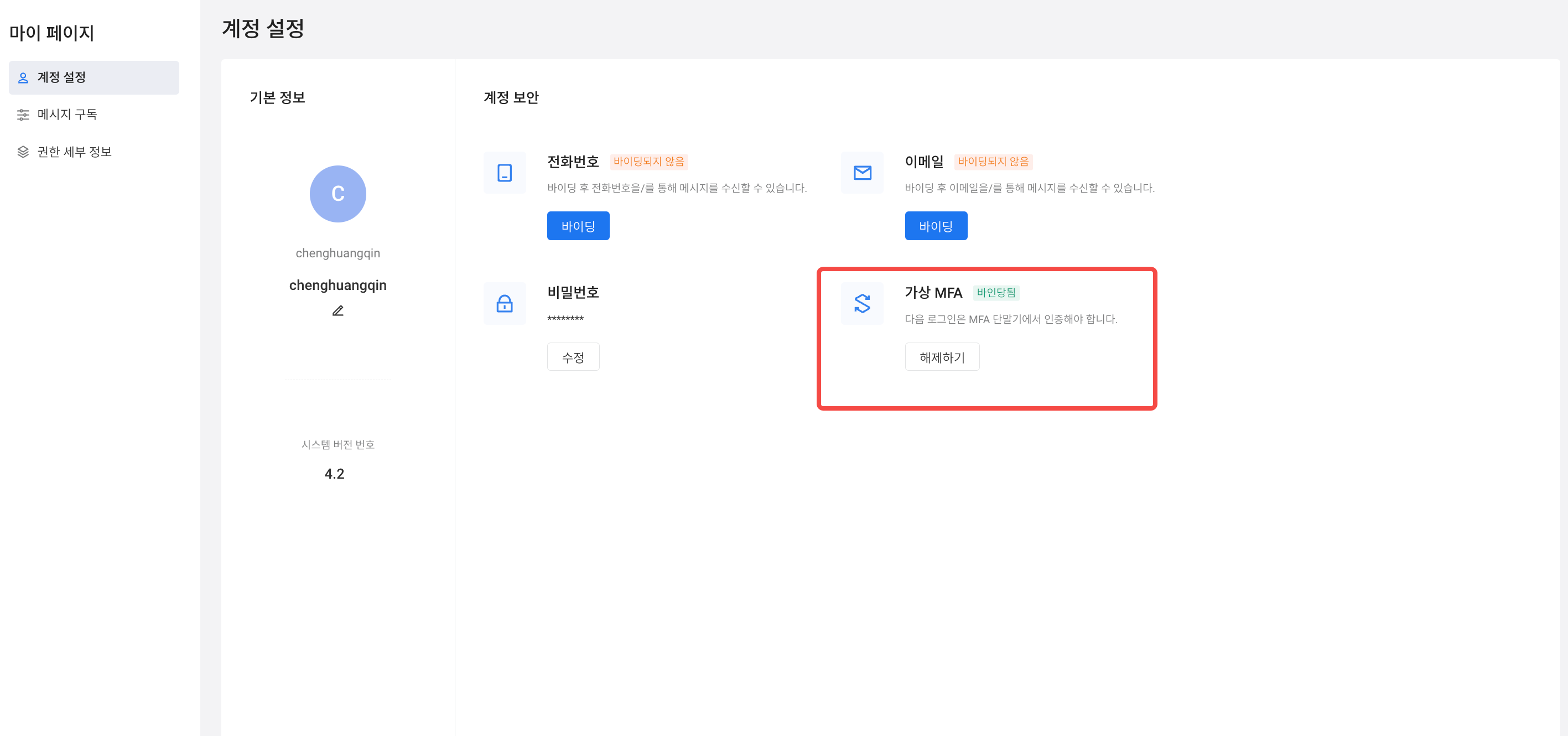 # 개인 MFA 연동/해제