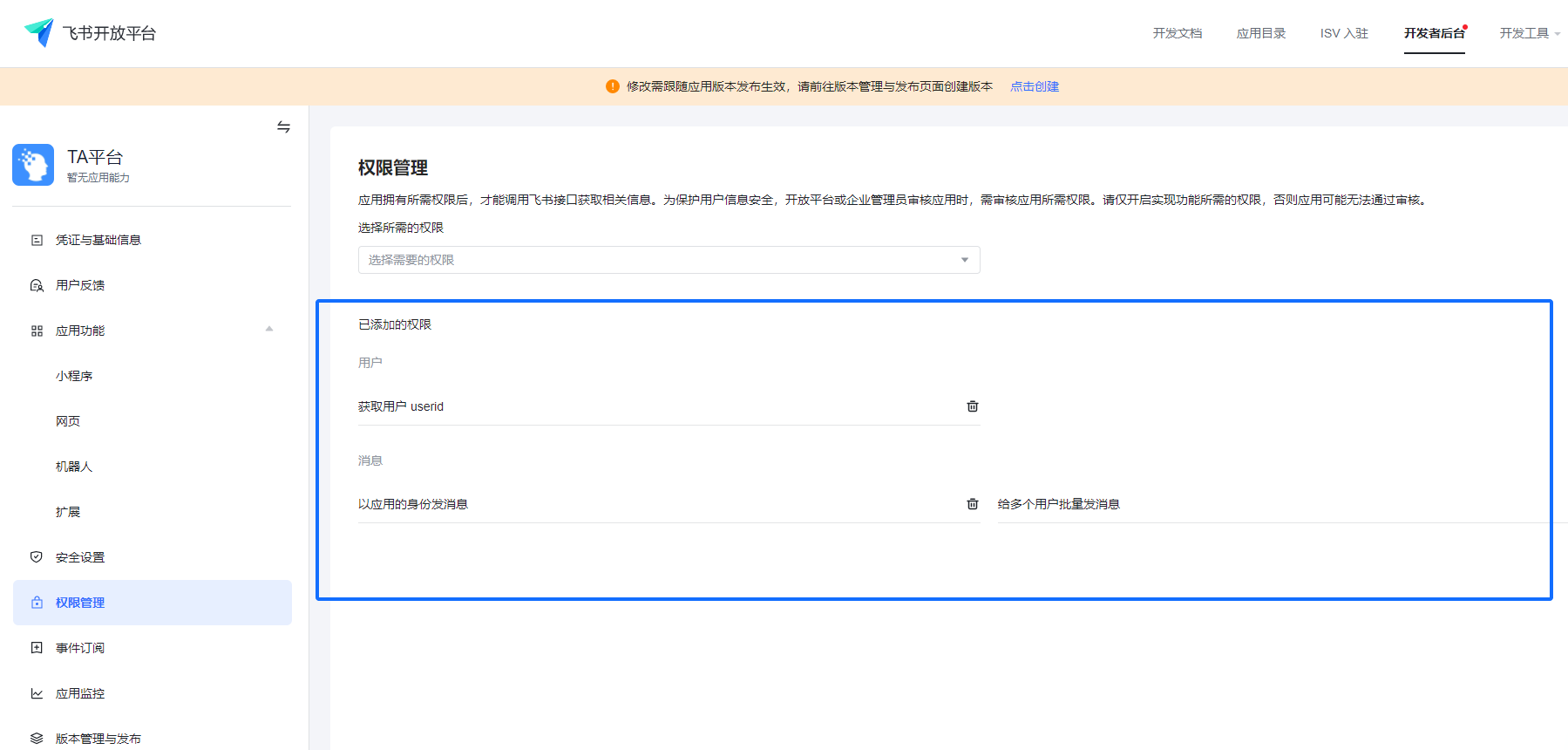 涉及人员权限变更的版本,需飞书管理员进行审核。审核通过后,发布版本方能生效。